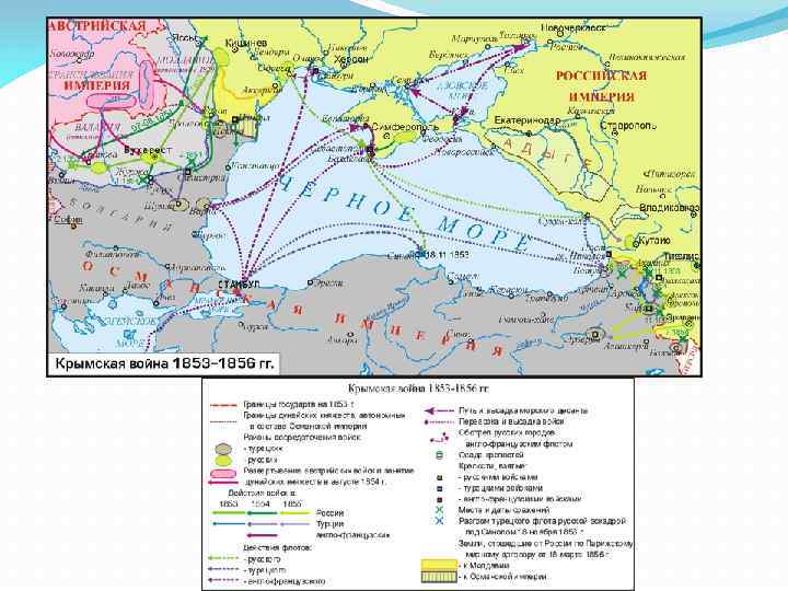 Итоги войны 13 февраля 1856 начался Парижский конгресс, а 18 марта был подписан мирный договор. 1. Россия возвращала османам город Карс с крепостью, получая в обмен захваченный у неё Севастополь, Балаклаву и другие крымские города. 2. Чёрное море объявлялось нейтральным с запрещением России и Османской империи иметь там военные флоты и арсеналы. 3. Плавание по Дунаю объявлялось свободным, для чего русские границы были отодвинуты от реки и часть русской Бессарабии с устьем Дуная была присоединена к Молдавии. 4. Россия лишалась предоставленного ей Кючук-Кайнарджийским миром 1774 года протектората над Молдавией и Валахией и исключительного покровительства России над христианскими подданными Османской империи. 5. Россия обязалась не возводить укреплений на Аландских островах. 6. В ходе войны участникам антироссийской коалиции не удалось добиться всех своих целей, но удалось предотвратить усиление России на Балканах и лишить её Черноморского флота.