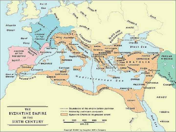 2. Дипломатия Византийской империи ¡ ¡ Юстин I (518 -527) – перед смертью оставил императорский престол своему племяннику – Юстиниану (527 -565). На престол он вступил в возрасте 45 лет. При нем был построен храм св. Софии в Константинополе (высота – 55 м. , купол 31 м. в диаметре). Ему удалось вновь объединить Восточную и Западную империи. Восточная Римская империя достигла в царствование Юстиниана наивысшего могущества.