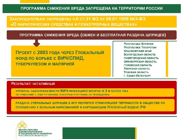 Конфликт методологий и научно-доказательной информации The conflict of methodology and scientific information • Информация о современной методологии терапии наркологических заболеваний, поддерживаемых профессиональными сообществами и ВОЗ, в РФ носит искаженный характер • The information about effectiveness of drug treatment strategies supported by profissionals and WHO has an incorrect interpretation in Russia • Низкая эффективность терапии наркологических заболеваний в РФ обусловлена игнорированием принципов доказательной медицины • The bad outcomes of drug treatment in Russia correllelated to ignoring of principals of evidence-based medicine