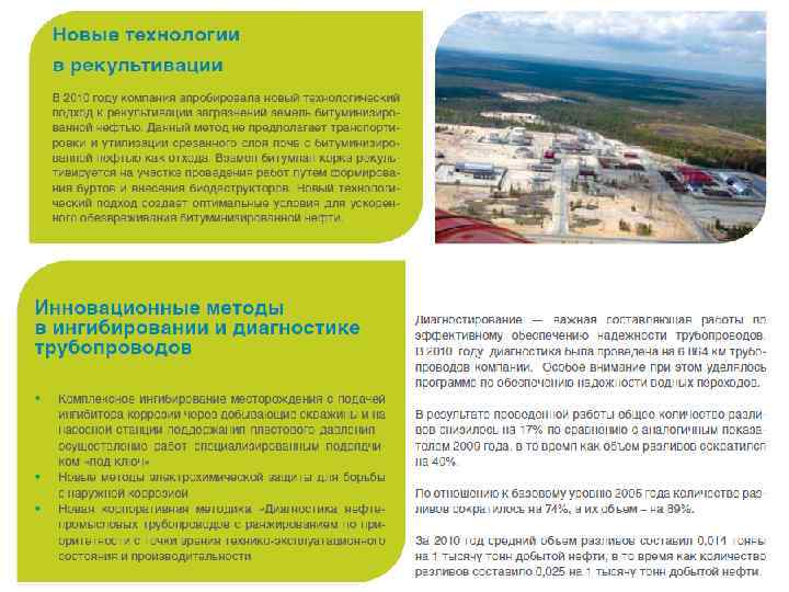 Стратегический приоритет компании — эффективное использование попутного нефтяного газа и последовательное повышение общего уровня его утилизации в размере 95% (2010 г 84, 6%). В 2010 -2013 годах компания планирует инвестировать 1, 8 млрд долл. США в проекты по утилизации попутного нефтяного газа к 2012 году. Соответствующая программа предусматривает строительство новых объектов сбора и переработки газа, возможное применение обратной закачки газа в пласты, а также строительство объектов электрогенерации, использующих попутный нефтяной газ в качестве топлива для выработки электроэнергии для собственных нужд.