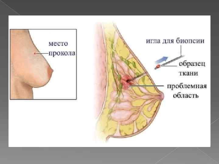 Вступление В ходе биопсии молочной железы из патологического участка производится забор образца клеток: хирургическим способом или с помощью менее инвазивной методики, которая подразумевает использование полой иглы. Полученный образец затем изучается под микроскопом, что позволяет поставить диагноз. Биопсия под визуальным контролем подразумевает удаление не всего патологического участка, а лишь небольшой его части.
