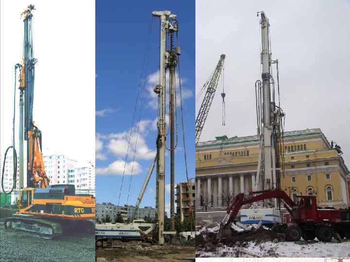 ТИПЫ БУРОВЫЕ СВАИ • Устраиваемые под защитой бентонитового(глинистого) раствора или воды; • Сваи изготавливаемые с креплением стенок скважины при бурении обсадной трубой; • Непрерывный проходной шнек (SOB, CFA), короткий проходной шнек; • Сваи уплотнения; • Комбинированные технологии.