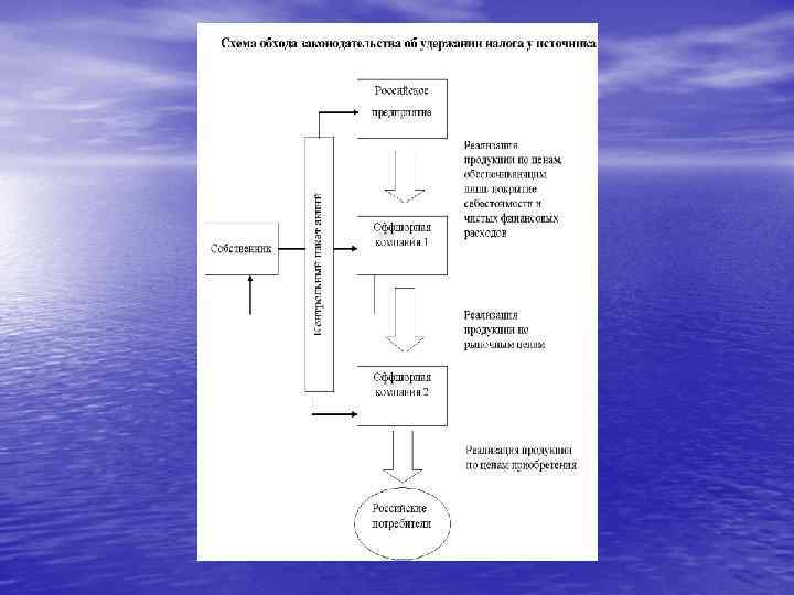 Литература: • • • Матусевич А. П. Оффшоры развивающихся стран. – М. , 2004 Энциклопедия оффшорного бизнеса. – М. , 2000 Ушаков Д. Л. Оффшорные зоны в практике российских налогоплательщиков. – М. , 1999 Булатов А. С. Создание и функционирование компаний с российским капиталом за рубежом. – М. , 2002 Апель А. , Гунько В. , Соколов И. Обналичивание и оффшорный бизнес в схемах. – М. , 2002 Кабир Л. С. Организация оффшорного бизнеса. – М. , 2002 Климовец О. В. Международный оффшорый бизнес. – М. , 2004 Пеппер Дж. Практическая энциклопедия международного налогового и финансового планирования. – М. , 1998 Робинсон Дж. Всемирная прачечная. – М. , 2005 Халдин М. А. Россия в оффшорном бизнесе. – М. , 2005 Чернявский С. П. Международный оффшорный бизнес и банки. – М. , 2002
