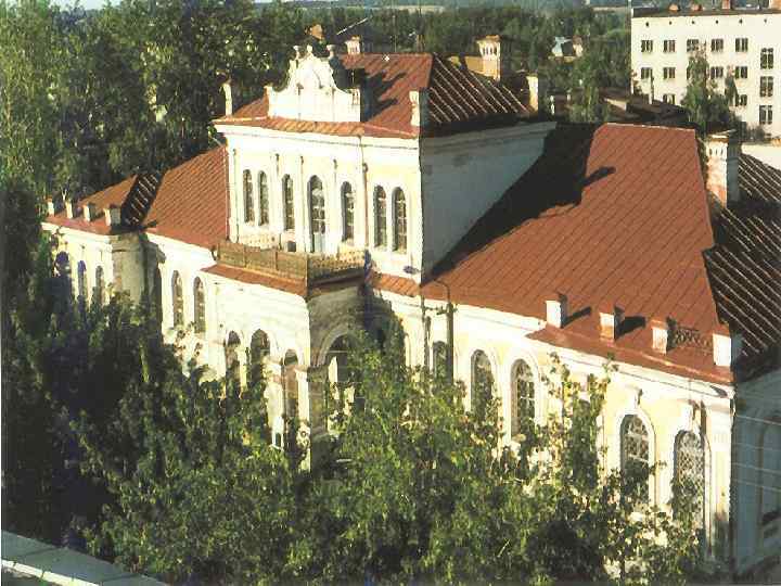 Купеческие усадьбы § В XIX в. в кунгурском зодчестве широкое распространение получил тип купеческих усадеб, где особняк находился по центру уличной границы участка или располагался на углу домовладения. А слева и справа от него возводилась ограда с калитками или воротами. § От соседних участков здания были отгорожены высокими каменными стенами-брандмауэрами, которые служили надежной защитой от огня во время пожаров. Значительная часть особняков Кунгура относится к сооружениям мезонинного типа, который широко применялся в гражданской архитектуре как классицизма, так и эклектики.