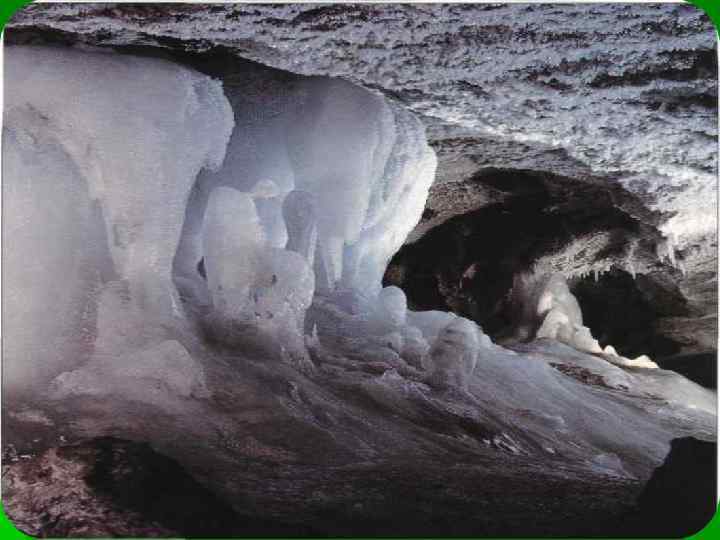 § В исследованной части пещеры несколько десятков гротов. § Особенно сильное впечатление производят гроты Бриллиантовый, Полярный, Данте, Скульптурный, Коралловый, Великан. Самый большой грот Дружба народов, где раскинулось подземное озеро площадью 750 квадратных метров. § Гроты украшают образовавшиеся изо льда столбики-сталагмиты и сосулькисталактиты, достигающие двух метров, ледяные и снежные узоры.