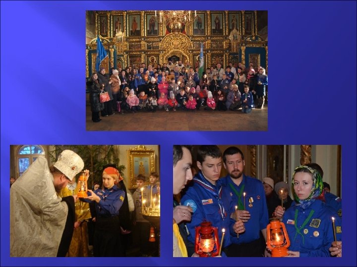 . Международная скаутская акция «Вифлеемский огонь - свет мира и дружбы» проходит с 1994 года Огонь передается из рук в руки от негасимой лампады, находящейся в Вифлееме в храме Рождества Христова Традиционно в Москве встречу Вифлеемского огня организует Братство Православных Следопытов на Крутицком Патриаршем Подворье