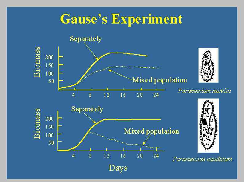 Принцип конкурентного исключения ( «закон Гаузе» , «принцип Вольтерры – Гаузе» ) в современной трактовке: Число видов, неограниченно долго сосуществующих в постоянных условиях гомогенного местообитания с постоянными численностями, не может превышать числа плотностно-зависимых факторов, лимитирующих развитие их популяций А. М. Гиляров