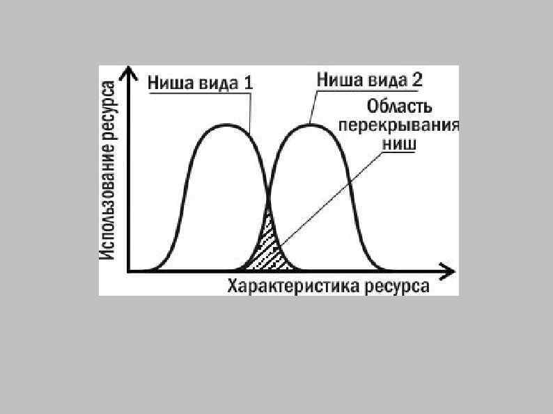Экологическая ниша – «место» , занимаемое видом в сообществе • место можно понимать буквально – как место в пространстве, т. е. пространственное распределение вида (Grinnell) • место можно понимать как положение вида в цепях питания, т. е. как набор необходимых виду пищевых ресурсов (пищевых организмов, элементов минерального питания у растений и т. д. ) (Elton) • положение вида в многомерном пространстве условий и ресурсов (многомерная ниша Хатчинсона, Hutchinson) Экологическая ниша: 1. Фундаментальная — набор требований вида к условиям среды 2. Реализованная — ниша занимаемая в сообществе, результат взаимодействия с другими видами