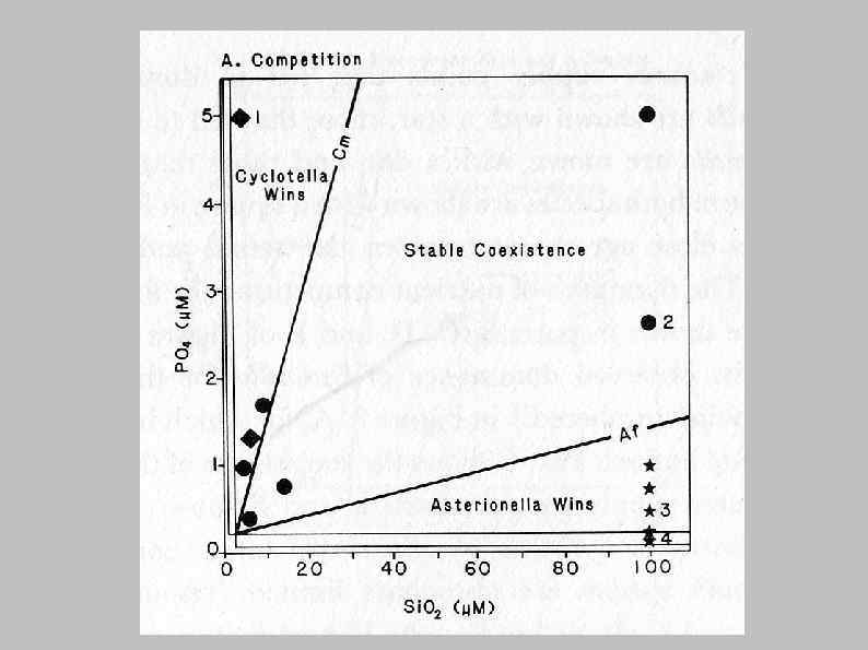 Ресурсная теория конкуренции Тильмана (David Tilman) (resource-based competition theory) Успех вида в конкуренции определяется пороговой концентрацией ресурса для этого вида, а возможность сосуществования с др. видами – скоростью потребления лимитирующего ресурса