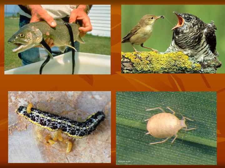 Паразитизм Паразитов подразделяют на: n Эктопаразитов – живущих на поверхности хозяев; n Эндопаразитов – живущих внутри организма хозяина; n Облигатных паразитов, или обязательных, которые не могут не паразитировать (например, трематоды и цестоды); n Факультативных, которые ведут свободный образ жизни и переходят к паразитизму исключительно в редких случаях, и не имеют ярко выраженных морфофизиологических и биологических приспособлений (некоторые нематоды); n Паразитоидов – паразитирует отдельная стадия