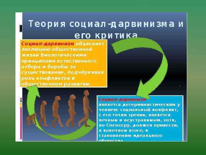 Социа льный дарвини зм — социологическая теория, согласно которой закономерности естественного отбора и борьбы за существование, выявленные Чарльзом Дарвином в природе, распространяются на отношения в человеческом обществе.