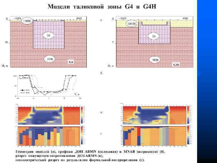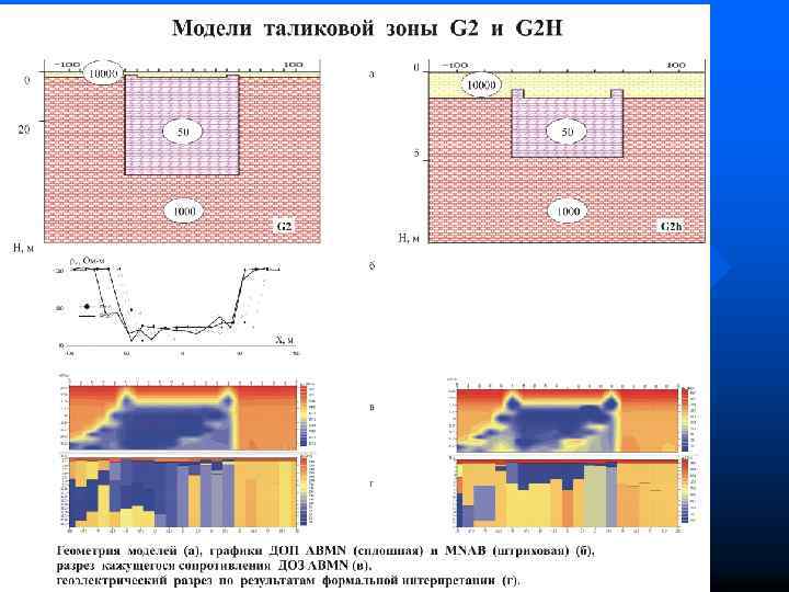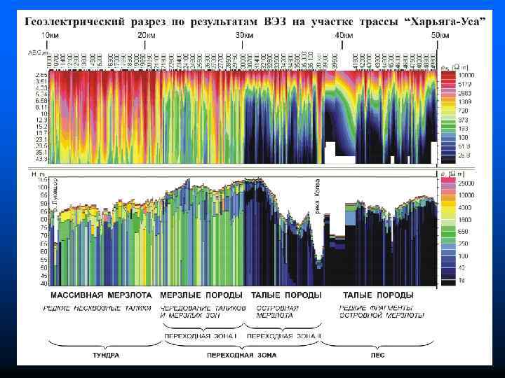 2 D модель упрощенного геоэлектрического разреза n Слой сезонного протаивания n Таликовая ванна n Высокольдистый слой n Зона вялой мерзлоты n Сквозной талик