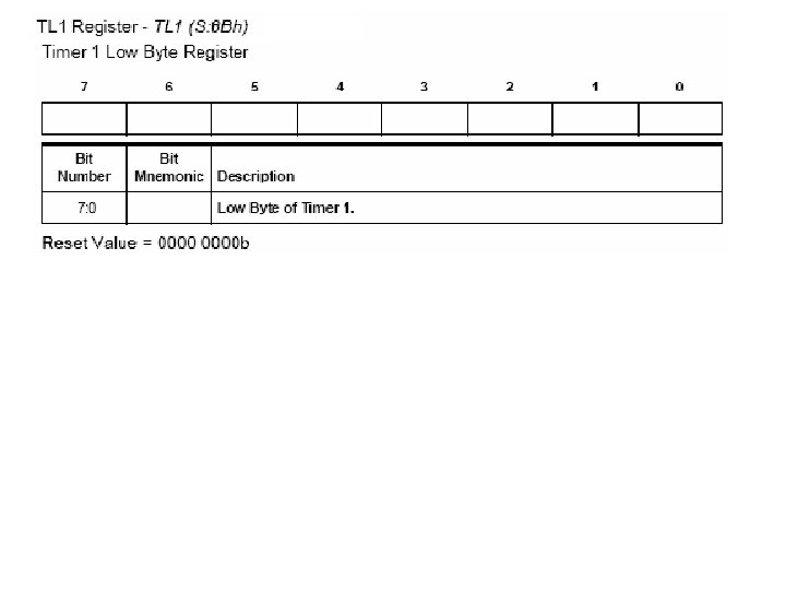 Mode 2 (8 -bit Timer with Auto-Reload) • • • Mode 2 configures timer 0 as an 8 -bit timer (TL 0 register) that automatically reloads from the TH 0 register. TL 0 overflow sets TF 0 flag in the TCON register and reloads TL 0 with the contents of TH 0, which is preset by software. When the interrupt request is serviced, hardware clears TF 0. The reload leaves TH 0 unchanged. The next reload value may be changed at any time by writing it to the TH 0 register. Mode 2 operation is the same for Timer/Counter 1.