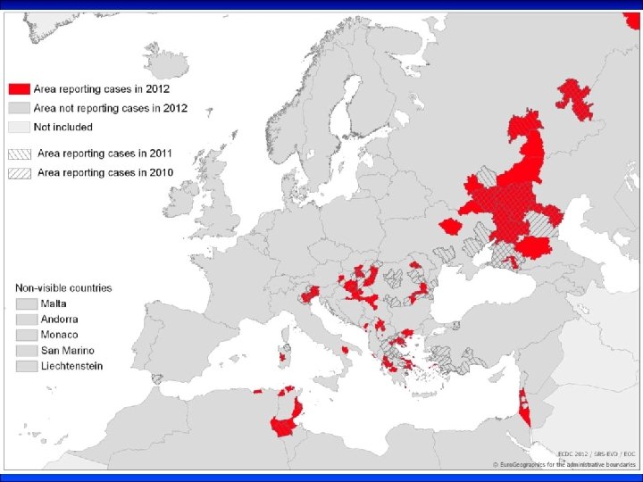 Viruses spread by mosquito bites- the case of West Nile virus • Epidemic in Kern County, CA, 2004 -2007 when the human case annual incidence increased from 6 -8 to 17 per 100, 000, respectively. • The 2007 increase in human infection was associated with contradictory surveillance indicators: • severe drought, warm spring but cool summer, decreased rural and urban mosquito abundance but increased early season infection in urban Culex quinquefasciatus Say, moderate avian "herd immunity, " and declines in the catch of competent (western scrub-jay and house finch) and noncompetent (California quail and mourning dove) avian species. • The marked increase in home foreclosures and associated neglected swimming pools increased urban mosquito production sites (Reisen WK et al. 2009) • Kern County’s West Nile Virus Strategic Response Plan: • “Fight the Bite” campaign, which calls for reporting of neglected swimming pools