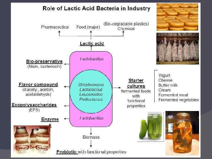 Lactic Acid Bacteria (LAB) or Lactics constitute a diverse group of microorganisms associated with plants, meat, and dairy. They are used in the manufacture of dairy products such as acidophilus milk, yogurt, buttermilk, and cheeses. The Lactics are also important commercially in the processing of meats (sausage, cured hams), alcoholic beverages (beer, fortified spirits), and vegetables (pickles, and saukerkraut). Although the LAB have beneficial effects in the food industry, they can be a nuisance as contaminants by producing off-flavors and contributing to spoilage.
