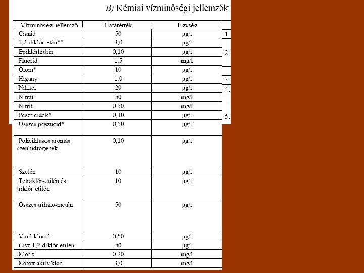 • 2000. évi XXV. Törvény a kémiai biztonságról • REACH Rendelet a vegyi anyagok regisztrálásáról, értékeléséről, engedélyezéséről és korlátozásáról (Registration, Evaluation, Authorisation and Restriction of Chemicals) • Minden EU-s gyártó, ill. EU-n kívülről importáló kötelessége: a gyártott (importált) vegyi anyagok előregisztrációja, majd anyagonként konzorciumban közös regisztrációja (regisztrációs díj, regisztrációs dosszié toxikológiai, stb. kockázatelemzésekkel) • Mo. : OKBI (Országos Kémiai Biztonsági Intézet) www. okbi. hu • 1995. Évi XC. törvény az élelmiszerekről
