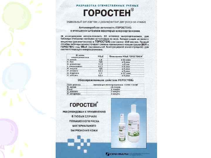 Лікарські форми декаметоксину • Декасан (0, 02%) ізотонований розчин для лікування гнійних ран, хронічних бронхітів і т. д. • Палісан (0, 01%) використовують для лікування перитонітів і інфікованих ран • Горостен (0, 025%) (гігієнічний антисептик) – розчин для гігієнічної дезінфекції шкіри • Палісепт (0, 05%) – мазь для лікування гнійничкових уражень шкіри і гнійних ран