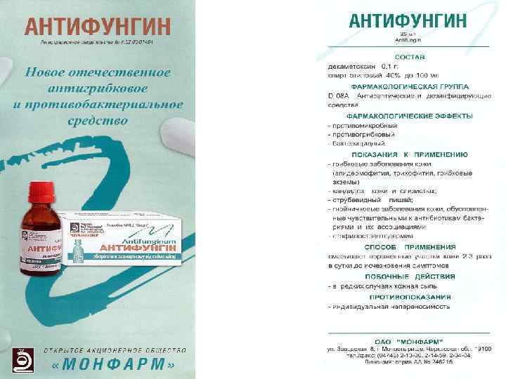 • Антифунгін (0, 1%) – розчин для лікування грибкових уражень шкіри • Амосепт (0, 5%) плівкоутворюючий препарат для знезараження шкіри рук хірургів і обробки мікротравм • Асперсепт (0, 02%) – присипка для профілактики та лікування запальних уражень шкіри • Аурісан, Отосан (0, 05%) вушні краплі для лікування отитів