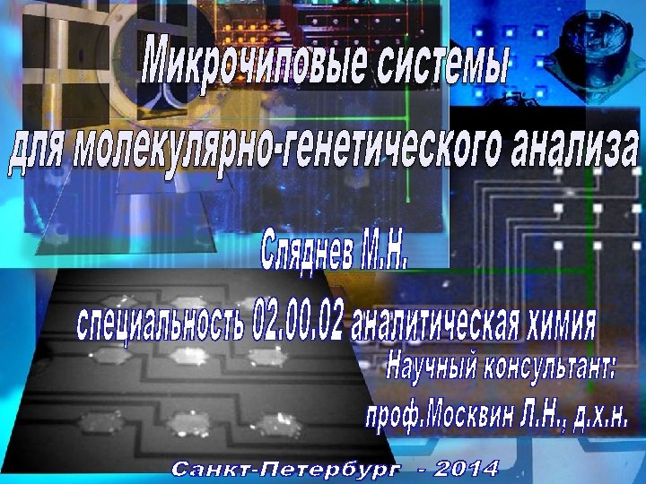 Задачи 1. 2. 3. 4. 5. Обосновать схемы и выбрать необходимые условия осуществления реакций молекулярно-генетического анализа в микрочиповых аналитических системах. Выбрать материал, обеспечивающий выполнение условий проведения аналитических реакций и выявить основные закономерности влияния его характеристик на проведение ПЦР в микрореакторах. Оптимизировать схемы и режимы работы микрочиповых аналитических систем по их параметрам, влияющим на правильность, воспроизводимость измерений, динамический диапазон сигнала, метрологические характеристики разрабатываемых методов. Разработать микрочиповые анализаторы нуклеиновых кислот с полным циклом регистрации, сбора и обработки данных для аналитической практики. Разработать методики определения нуклеиновых кислот с помощью созданных микрочиповых анализаторов и оценить их возможности для решения практических задач молекулярно-генетической диагностики. 6