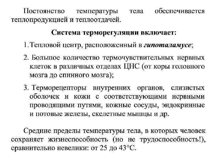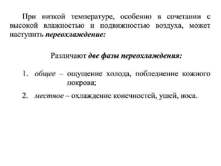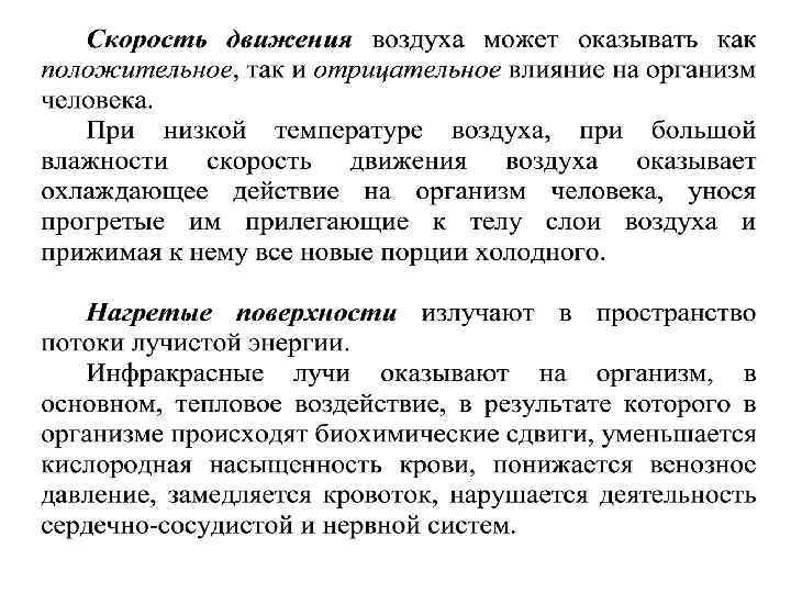 При значительных отклонениях параметров внешней среды от комфортных и их длительном воздействии организм может переохлаждаться или перегреваться. При высокой температуре окружающей среды теплоотдача затрудняется и наступает перегрев организма.