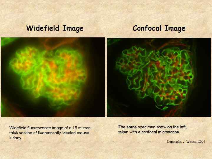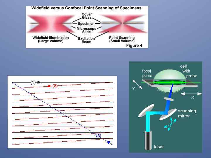 Confocal Principle ILLUMINATION DETECTOR PINHOLE Illumination and detection through the pinhole microscope CONFOCAL PLANE cell
