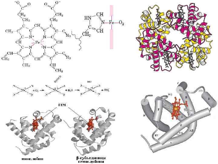 Переход между Т (tense)- и R (relaxed)-состояниями tense − напряженное, relaxed − релаксированное Изменение конформации белка вблизи гема при связывании О 2 с дезоксигемоглобином
