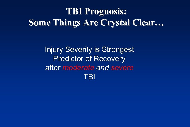TBI Prognosis: Some Things Are Crystal Clear… Injury Severity is Strongest Predictor of Recovery after moderate and severe TBI