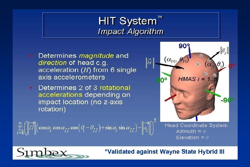 Accelerometry Instrumentation Measures and records blows to the head: - Impact location - Impact magnitude - Impact duration - Linear and angular acceleration components -Exact times of impacts