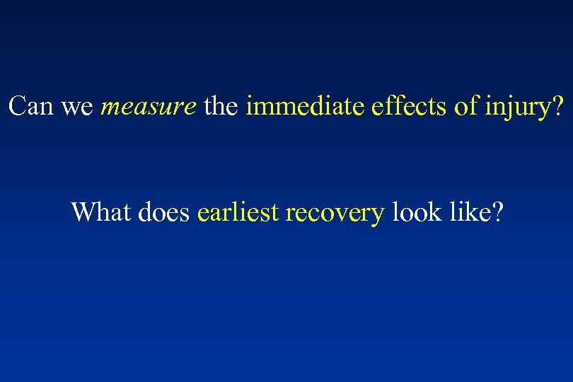 Can we measure the immediate effects of injury? What does earliest recovery look like?