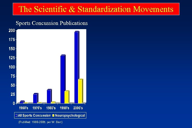 The Scientific & Standardization Movements Sports Concussion Publications (Pub. Med: 1960 -2005; per W. Barr)