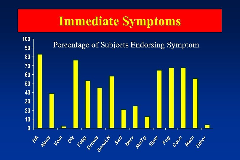 Immediate Symptoms Percentage of Subjects Endorsing Symptom