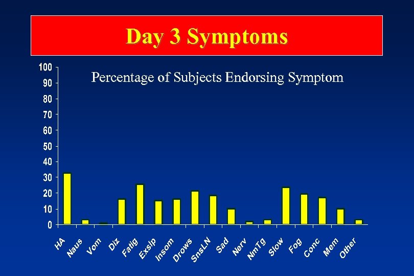 Day 3 Symptoms Percentage of Subjects Endorsing Symptom