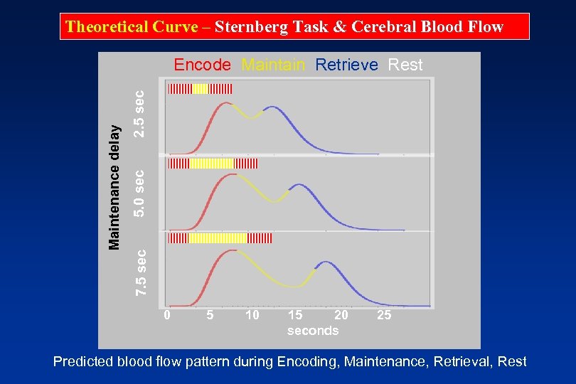 Theoretical Curve – Sternberg Task & Cerebral Blood Flow 2. 5 sec 5. 0 sec 7. 5 sec Maintenance delay Encode Maintain Retrieve Rest 0 5 10 15 20 seconds 25 Predicted blood flow pattern during Encoding, Maintenance, Retrieval, Rest