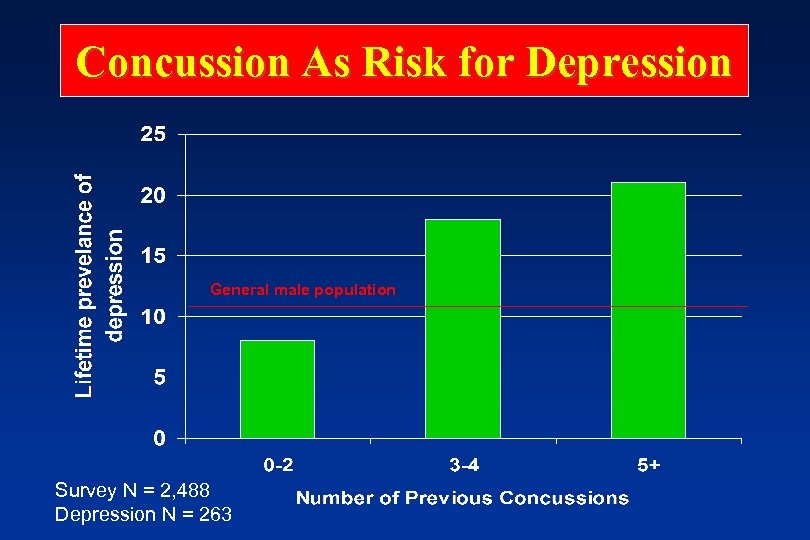 Concussion As Risk for Depression General male population Survey N = 2, 488 Depression N = 263