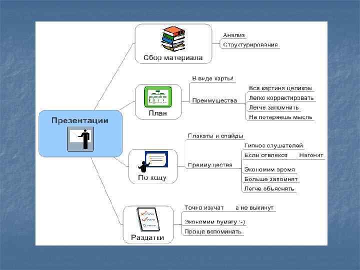 Запоминание Интеллект-карты отлично подходят для запоминания информации, т. к. требуется запоминать не 100 страниц текста, а 100 ключевых слов. Что гораздо проще!