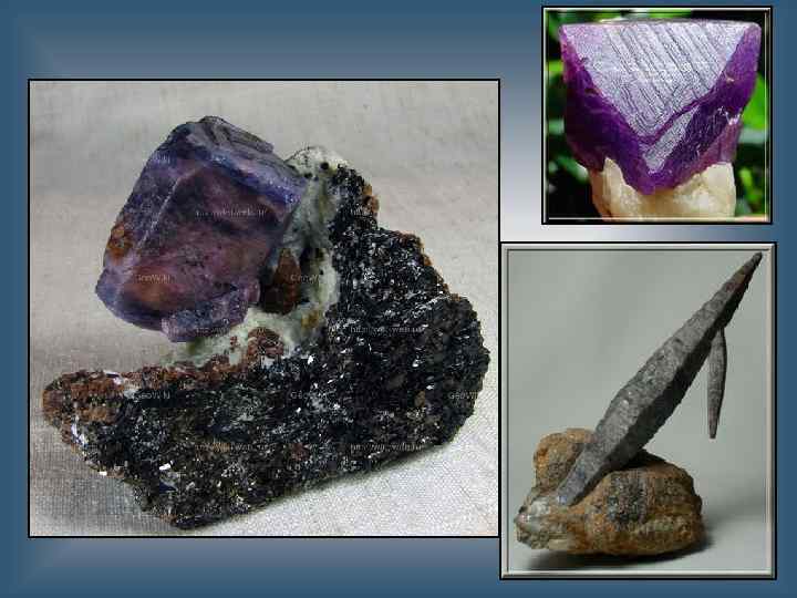 кварц Si. O 2 Сингония тригональная Цвет Коричневый, бесцветный, фиолетовый, серый, жёлтый Цвет черты Белая Блеск Стеклянный Твёрдость 7 Спайность несовершенная Излом раковистый Плотность 2, 6 — 2, 65 г/см³