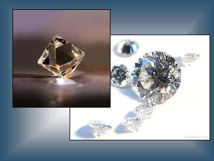 алмаз C Сингония Кубическая Цвет Обычно жёлтый, коричневый, серый или бесцветный. Реже встречаются голубые, зелёные, чёрные и пр. Цвет черты Бесцветная Блеск Алмазный Прозрачность Прозрачный, полупрозрачный Твёрдость 10 Спайность Совершенная по {111} Излом Раковистый Плотность 3, 5 — 3, 53 г/см³ Показатель преломления 2, 402 -2, 465