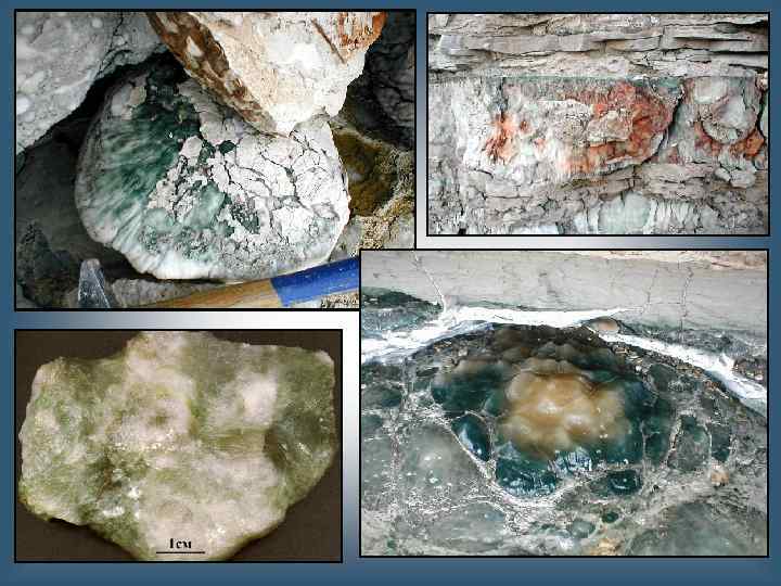 Тальк Mg 3 Si 4 O 10(OH)2 ТАЛЬК - минерал подкласса слоистых силикатов, цвет белый, зеленоватый, цвет черты – белая, твердость 1; плотность 2, 6 -2, 8 г/см 3, блеск стеклянный (перламутровый), полупрозрачный, спайность совершенная по {001}