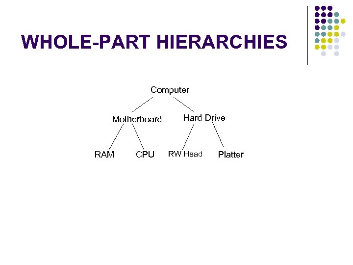 WHOLE-PART HIERARCHIES Computer Motherboard RAM CPU Hard Drive RW Head Platter