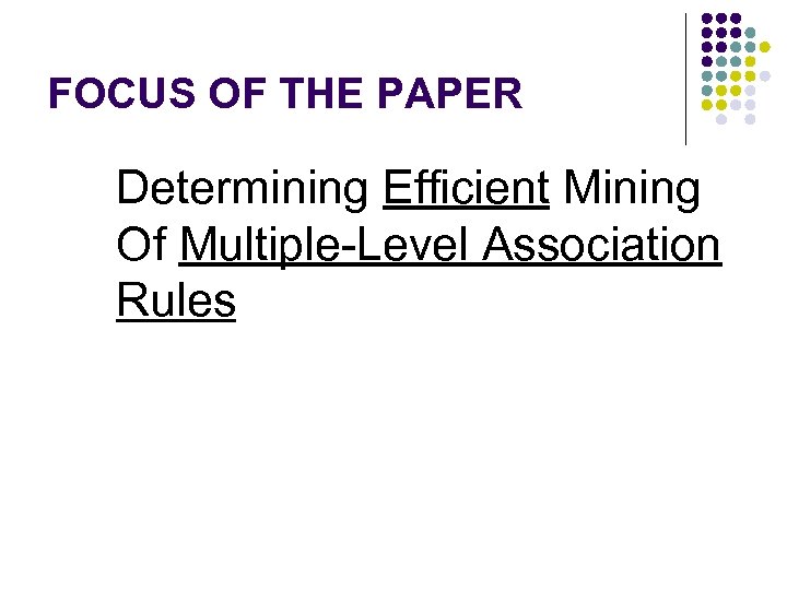 FOCUS OF THE PAPER Determining Efficient Mining Of Multiple-Level Association Rules