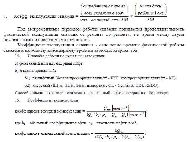 Категории скважин для разработки месторождений б) пьезометрические - для систематического измерения пластового давления в законтурной области, нефтяной зоне пласта и в газовой шапке. Специальные скважины предназначаются для добычи технической воды, сброса промысловых вод, эксплуатации подземных хранилищ газа, ликвидации открытых фонтанов. Водозаборные скважины предназначаются для технического водоснабжения систем поддержания пластового давления и бурения скважин. Поглощающие скважины предназначены для закачки промысловых вод в поглощающие пласты. Пробуренные добывающие, нагнетательные, водозаборные и поглощающие скважины за вычетом наблюдательных, законсервированных и ликвидированных относятся к эксплуатационному фонду скважин. Эксплуатационный фонд скважин подразделяется на действующий фонд, бездействующий фонд и фонд скважин, находящихся в освоении и ожидании освоения после бурения. К действующему фонду скважин относятся скважины, дававшие продукцию (находившиеся под закачкой) в последнем месяце отчетного периода независимо от числа дней их работы в этом месяце. В действующем фонде выделяются дающие продукцию (под закачкой) скважины и остановленные по состоянию на конец месяца скважины из числа дававших продукцию (находившихся под закачкой) в этом месяце. К бездействующему фонду относятся скважины, не дававшие продукцию (не