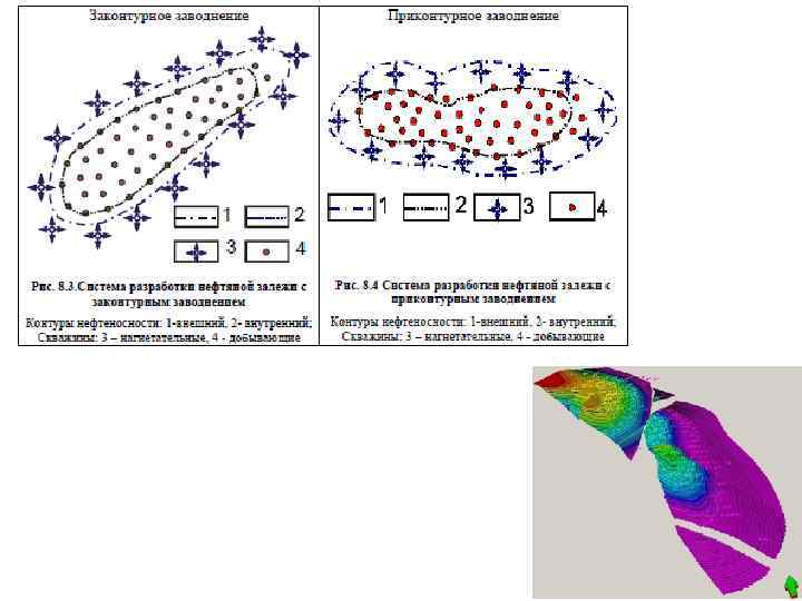 В 50 -е годы возникли и стали развиваться новые модели нефтяных пластов (трещиноватых и трещиновато-пористых), а также методы анализа и регулирования разработки нефтяных месторождений. Наряду с площадными системами появились сначала системы внутриконтурным разрезанием месторождений рядами нагнетательных скважин и расположением добывающих скважин вдоль линии разрезания, а затем блоково-рядные системы.