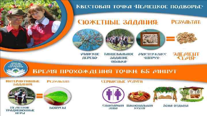 Место проведения: село Красногорка – озере Эбейты Расписание квестового дня: начало работы с 09. 00 – 20. 00 часов Ориентировочное время прохождения квеста: Вход групп(ы) на квестовую площадку в 9. 00, 10. 30, 12. 00, 13. 30 часов 6 часов 20 минут