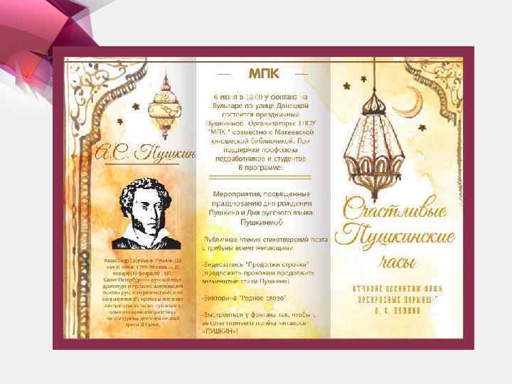 В ознаменование празднования Дня русского языка и дня рождения А. С. Пушкина для студентов ГПОУ «Макеевский политехнический колледж» и общественности г. Макеевка