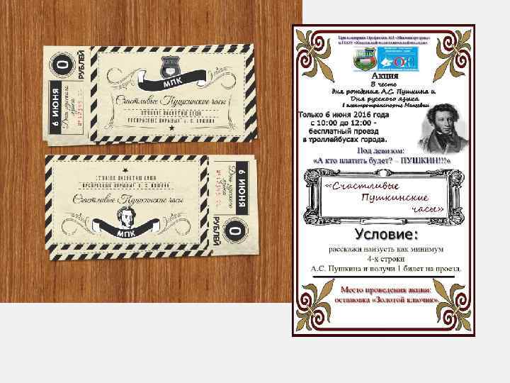 Акция «Счастливые Пушкинские часы» в электротранспорте Макеевки под девизом «А кто платить будет? – Пушкин!» • группа волонтеров «МПК» встречает пассажиров троллейбуса с предложением продекламировать четверостишие А. С. Пушкина и проехать свой маршрут в троллейбусе бесплатно