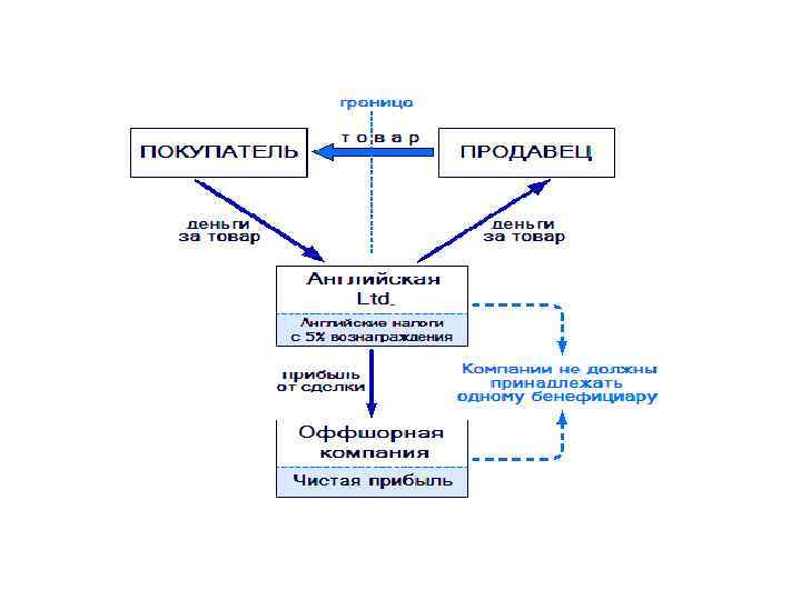 Особенности оффшорных зон - практически полное освобождение от государственного контроля деятельности компании, гарантируется полная ее конфиденциальность; - ускоренную и упрощенную процедуру регистрации компаний-нерезидентов данной страны, причем за регистрацию платится более чем символическая сумма. Как пример можно указать Панаму, где для того, чтобы зарегистрировать субъекта предпринимательской деятельности, даже не нужно указывать соучредителей регистрируемой компании. Ежегодный сбор за перерегистрацию также очень мал; - налоги с прибыли компании-нерезиденты страны так же выплачивают по серьезно заниженным ставкам.