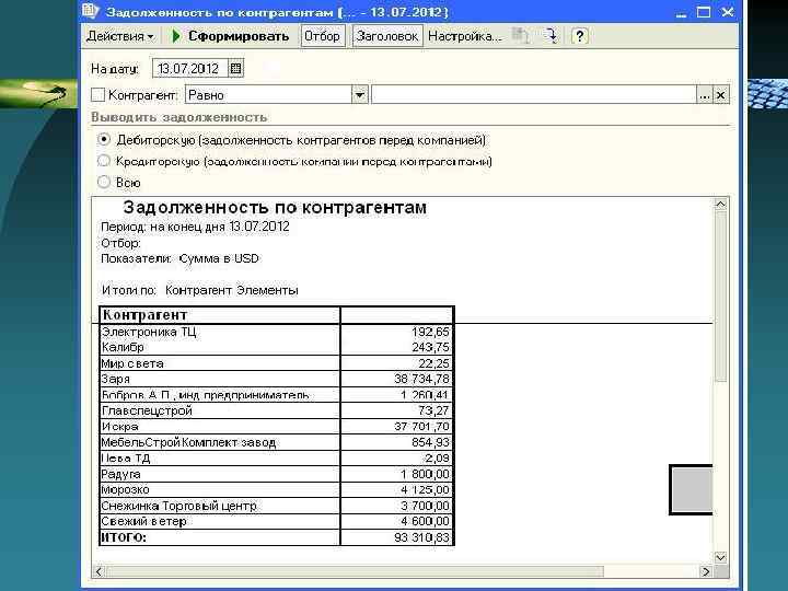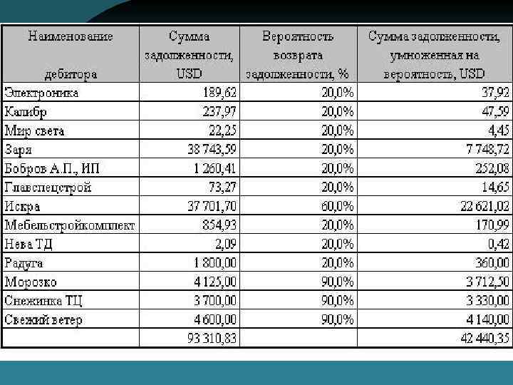 Дебиторской задолженности • • • Компаний, работающих со своими покупателями и заказчиками исключительно по предварительной оплате, в России сегодня меньшинство, и потому вопрос управления дебиторской задолженностью по-прежнему актуален. Какова общая сумма дебиторской задолженности и из чего она сложилась? Насколько велика или мала эта цифра в сравнении с прошлым месяцем, аналогичным периодом прошлого года? Какова структура «дебиторки» по датам возникновения? Какие именно покупатели и заказчики не оплачивают нашу продукцию? Какие именно заказы (заявки), отгрузки не оплачены? В чем причины неоплат и когда ожидать платежей? Вот, пожалуй, те вопросы, ответы на которые хотели бы знать руководители компаний.