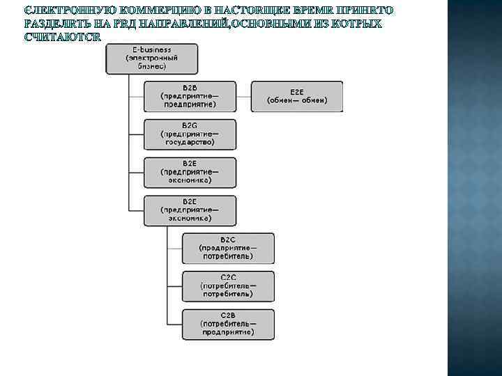 q «Бизнес-бизнес" (Business-to-Business - В 2 В); q «Бизнес-потребитель" (Business-to. Customer или Business-to-Client - В 2 С); q business-to-administration (B 2 A). consumer-to-administration (C 2 A). q «Потребитель-потребитель" (Consumer-to. Consumer - С 2 С).