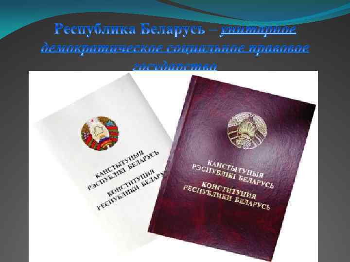 Республика Беларусь обладает верховенством и полнотой власти на своей территории, самостоятельно осуществляет внутреннюю и внешнюю политику. Республика Беларусь защищает свою независимость и территориальную целостность, конституционный строй, обеспечивает законность и правопорядок.