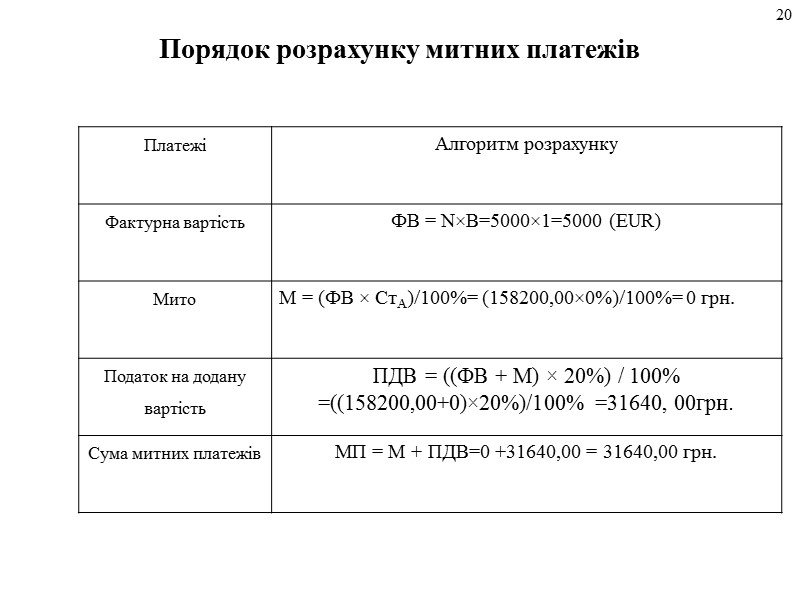 Порядок розрахунку митних платежів 20